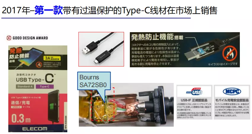 2017年,第一款带有过温保护的Type-C线材在市场上销售,人们开始重视线材过温保护的问题。