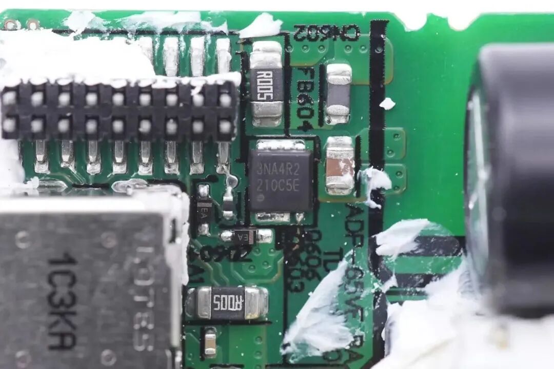 同步整流控制器来自MPS,丝印AZE,实际型号为MP6908,是一颗快速关断同步整流控制器,支持DCM,CCM和准谐振工作模式,支持逻辑驱动电压和标准电压的同步整流管,支持高侧和低侧应用。
