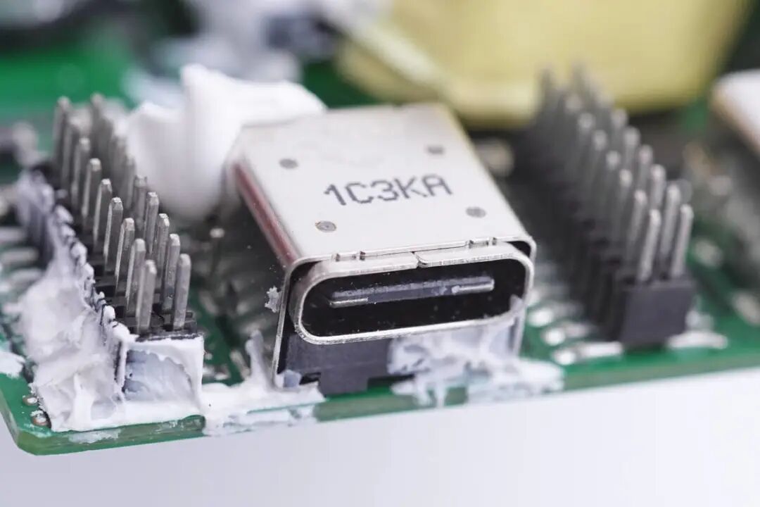 USB-C母座为黑色胶芯。