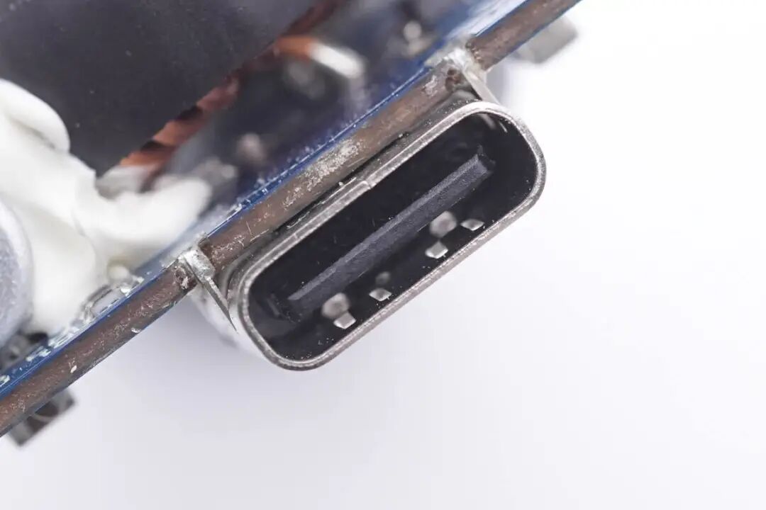 USB-C母座过孔焊接固定,黑色胶芯不露铜。