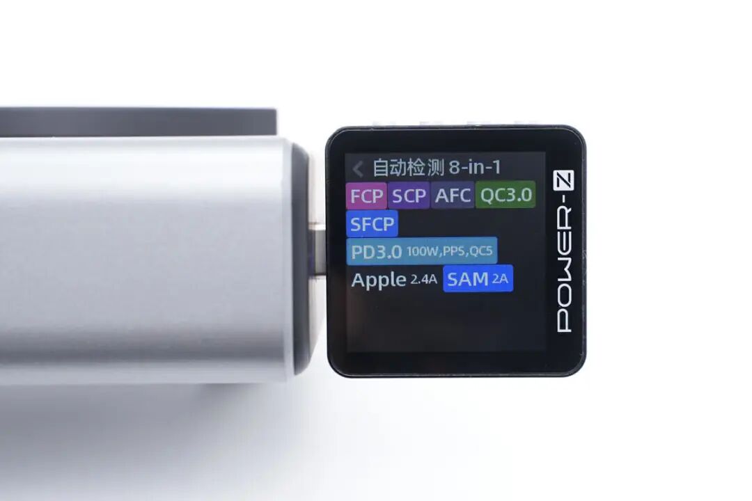 使用ChargerLAB POWER-Z KM003C测得USB-C PD1口支持FCP、SCP、AFC、QC3.0、SFCP、PD3.0、PPS、QC5、Apple 2.4A、Samsung 5V2A充电协议。