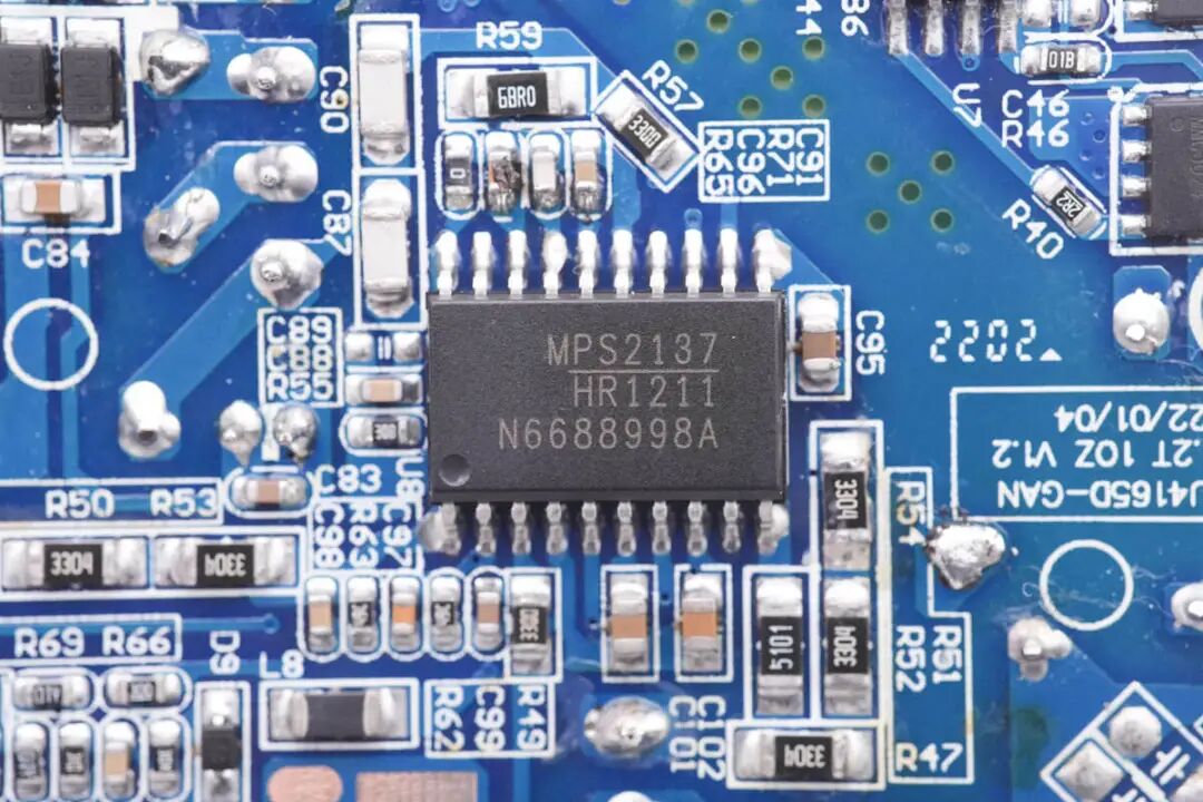 充电头网通过拆解了解到,这款氮化镓充电器采用MPS二合一高集成电源芯片HR1211,PFC升压开关管采用两颗GaN Systems GS-065-011-1-L增强型氮化镓开关管并联,PFC整流管采用泰科天润G5S6504Z碳化硅二极管,LLC开关管采用华瑞微HRD65T230D,搭配MP6924A同步整流控制器和恒泰柯HGN046NE6AL组成固定电压输出的开关电源。