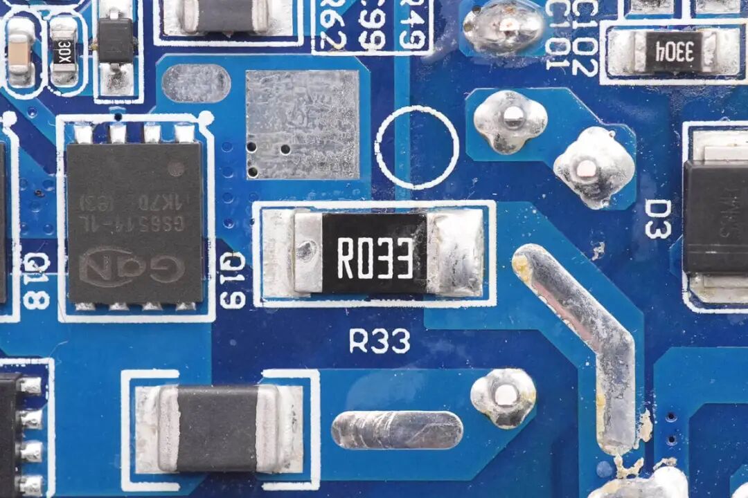 用于检测PFC开关管电流的取样电阻,采用2512封装,阻值为33mΩ。