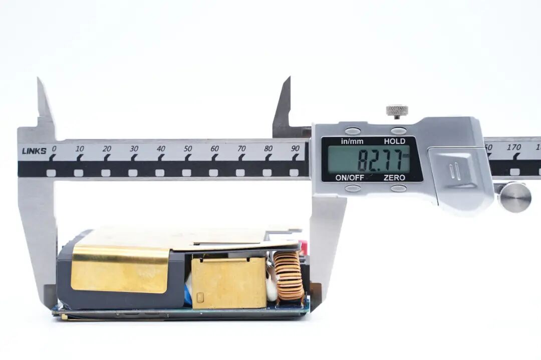 使用游标卡尺测得PCBA模块长度约为82.77mm。