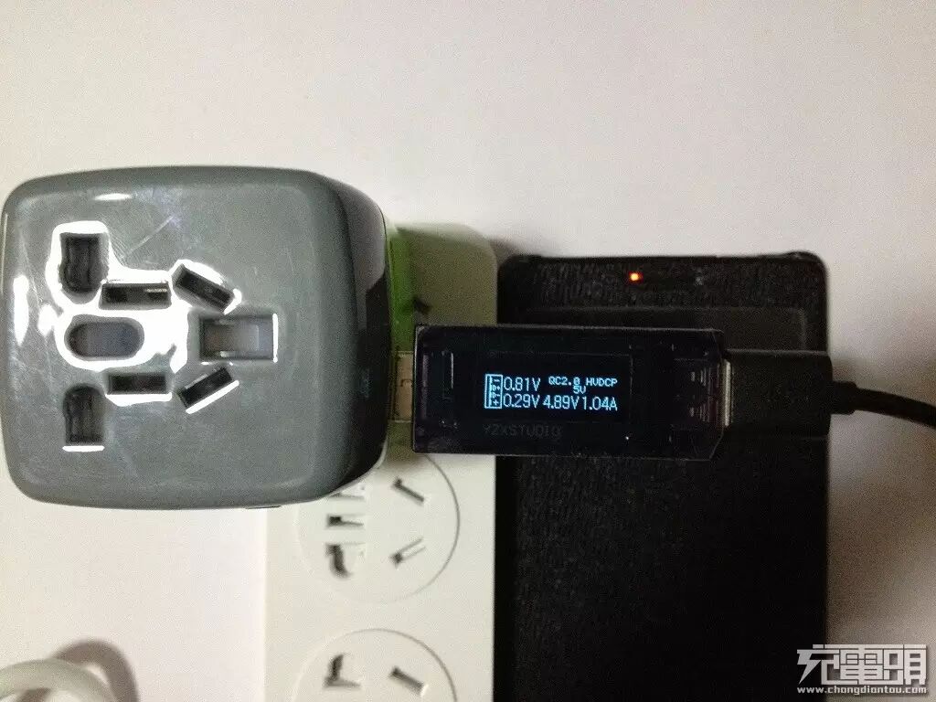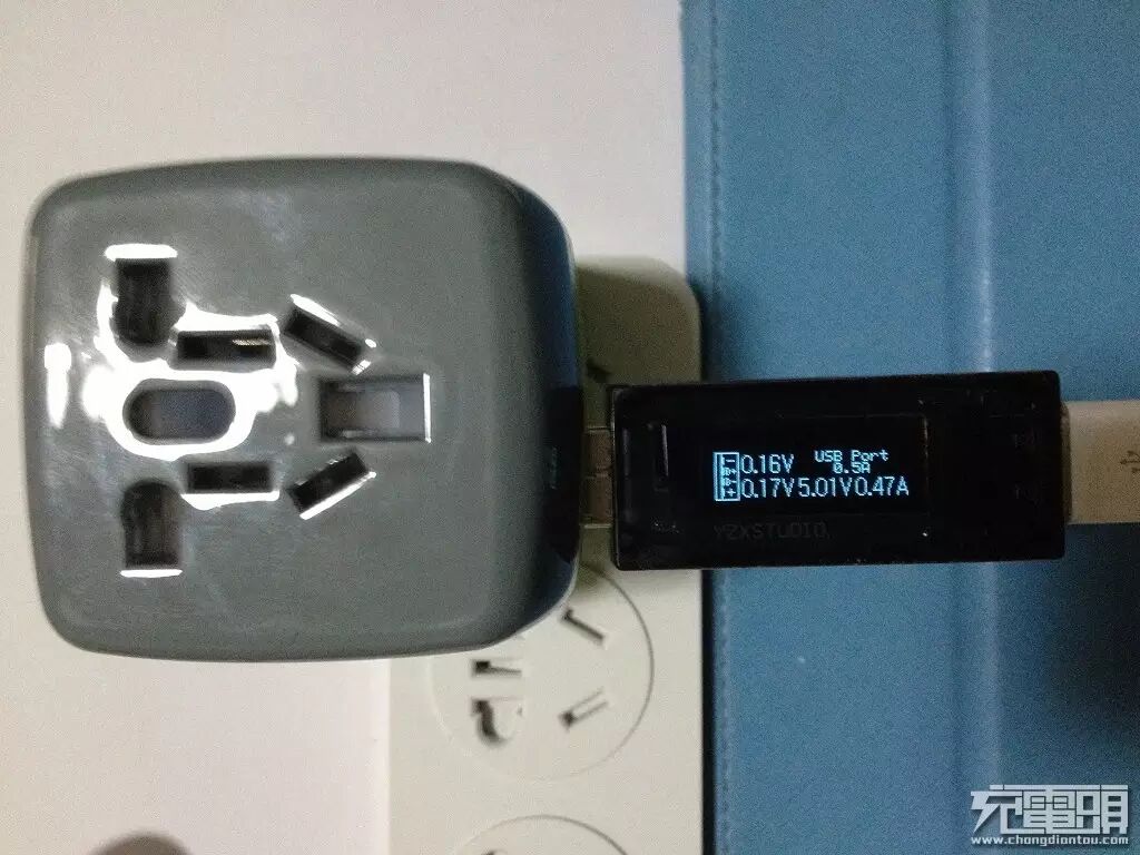 8、简单测试下USB接口实际对手机平板充电输出,对安卓手机1A充电,对iPAD不兼容,只有0.47A充电。