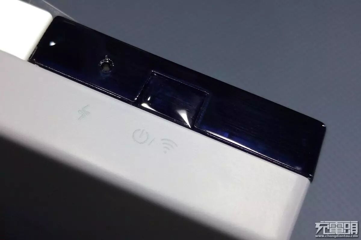 打开包装盒上盖后就可以看到追剧神器的本体,黑白配的外壳很是引人注目,颜值颇高,与市面上一众铝合金外壳、塑料一体外壳的移动电源相比,手持乐泡追剧神器的你一下子就可以吸引到人们的目光。