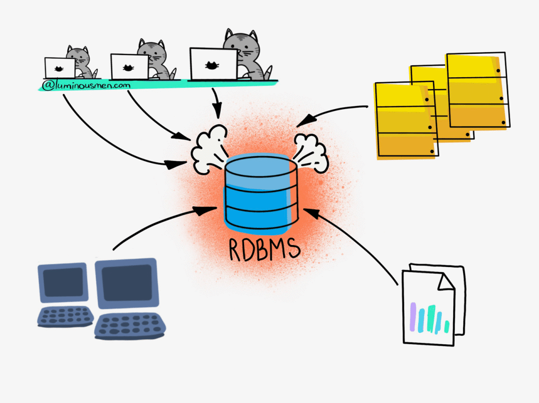 假设我们正在构建一个简单的 Web 应用程序。在大多数情况下,此类项目从最小的数据架构开始。例如,像 MySQL 或 PostgreSQL 这样的关系数据库足以处理和存储许多用户可以使用的数据。他们输入查询,更新它们,关闭它们,更正它们,通常会执行许多操作。它可以是 CRM、ERP、自动银行系统、计费系统,甚至是 POS 终端,应有尽有。