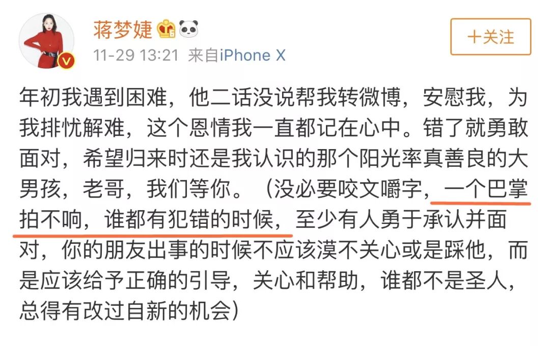 有人说,胡歌的微博每字每句看起来问题都不大,也提到了“错了就是错了但别趴下”、“我不是为他辩解什么”,怎么会引起这么大的反弹?