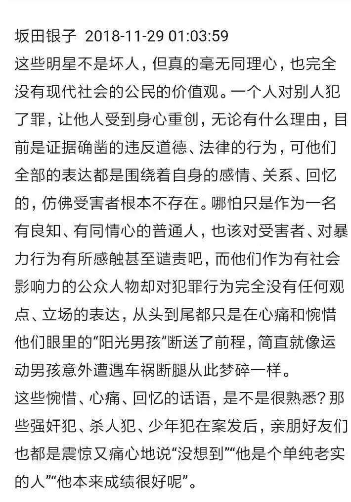 无论他们发声的初衷是想表达对朋友的关怀,还是仅仅怕被人骂无情无义,在蒋劲夫事件中存在这样一个明确的具体的受害人时,你不能因为受害人不是自己的朋友,而彻底忽略她的痛苦。