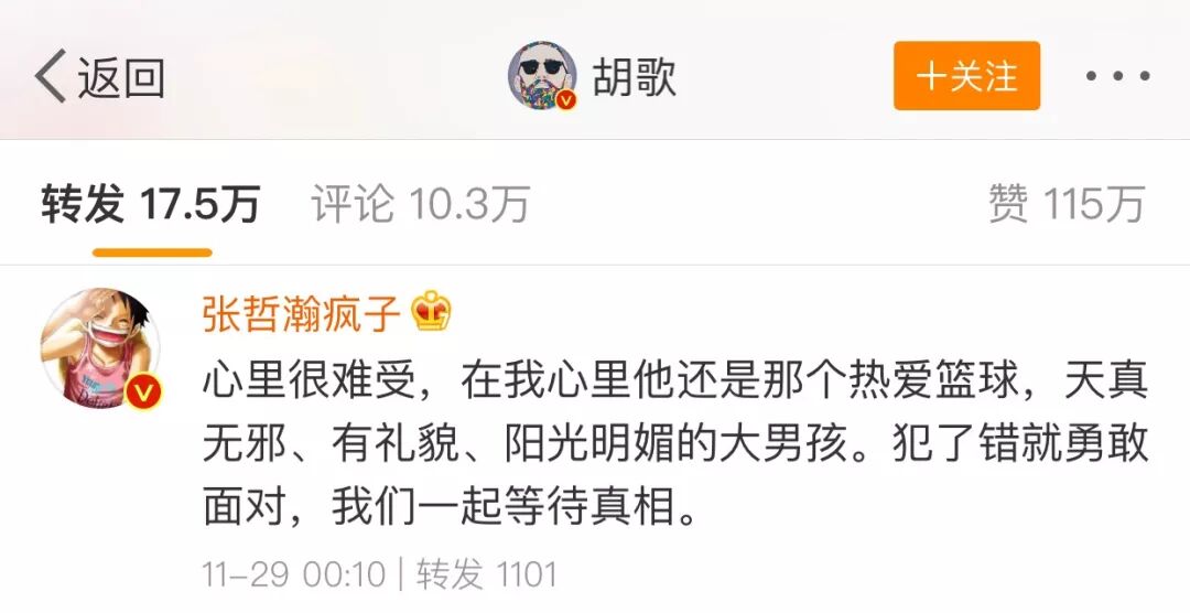 如果没有后续明星猪队友的排队表态,胡歌的话也勉强过得去。
