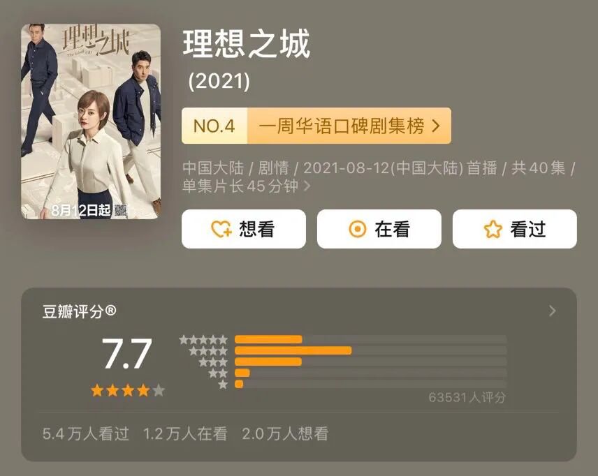 《理想之城》虽然没能延续孙俪爆款神话,但单看收视也始终破1,放在大盘奇冷的2021年,也算过得去。![]()