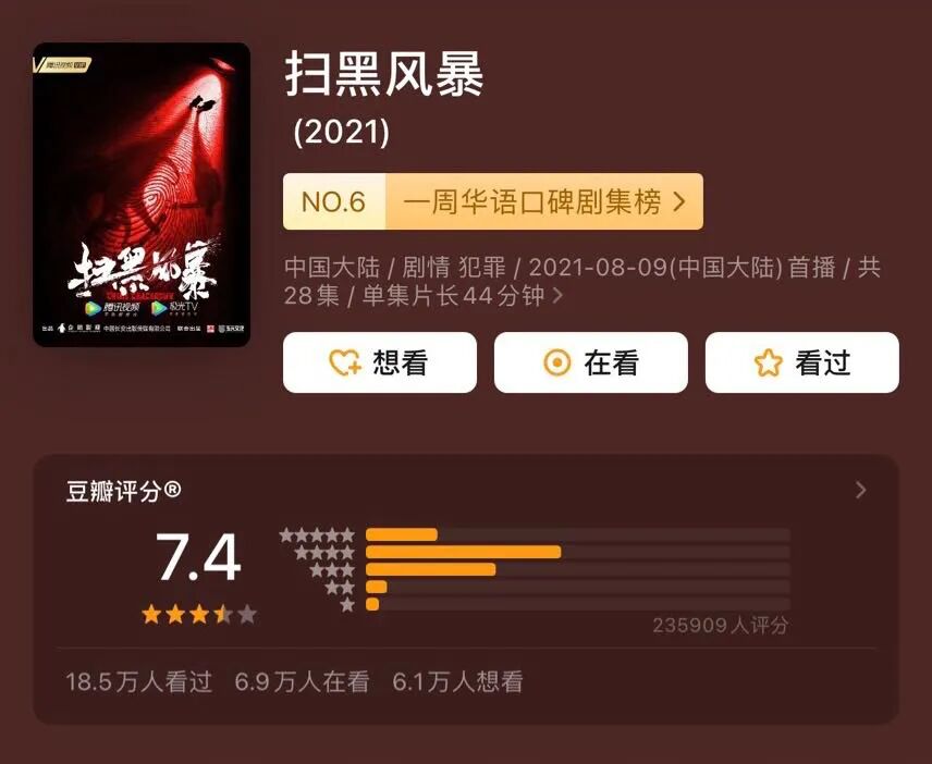 《扫黑行动》三台联播,收视率最高时破3,平均大概能破2,已经是今年最出圈剧集了。