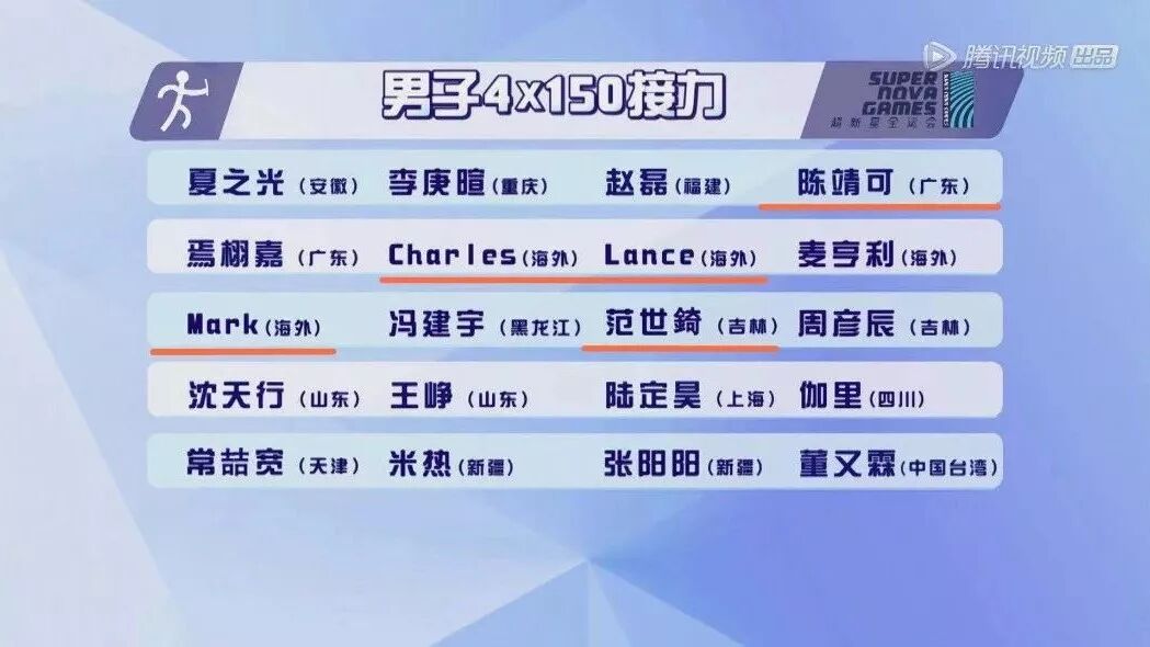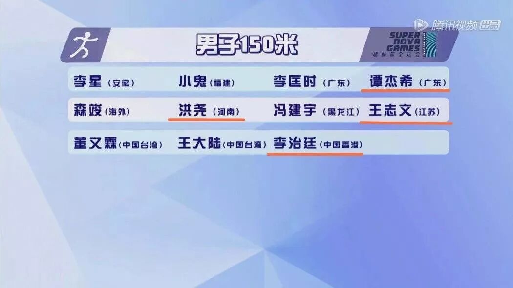 其中江苏队的王志文像是田径全能选手,看好他的50米和150米