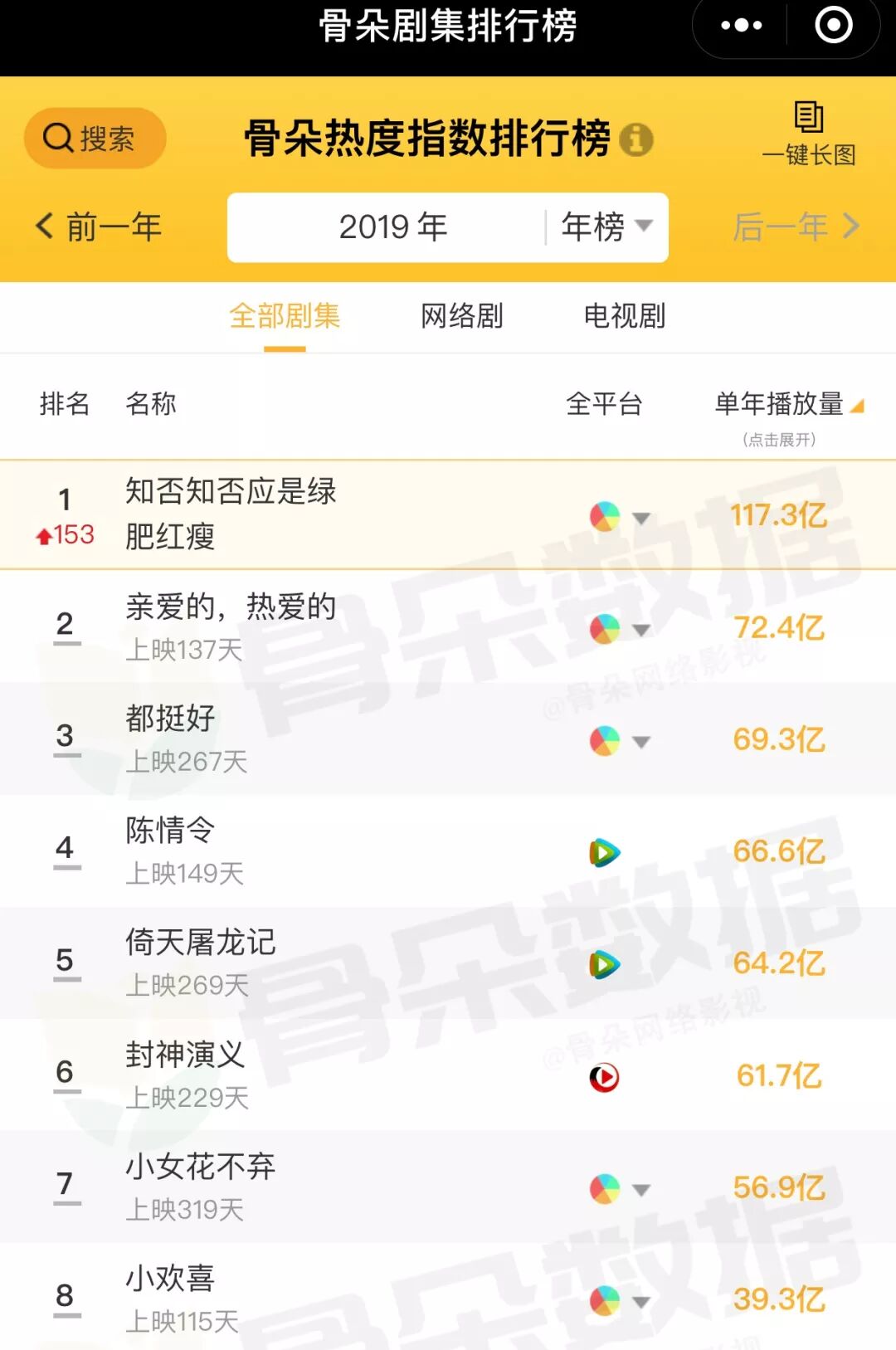 2019年已完结剧集收视排行(含双台联播),来源维基百科