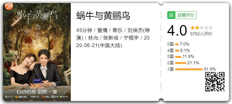 在如此高度的原版面前,大陆改编的这部《蜗牛与黄鹂鸟》,从演员表张新成+林允开始,就让人觉得不行。