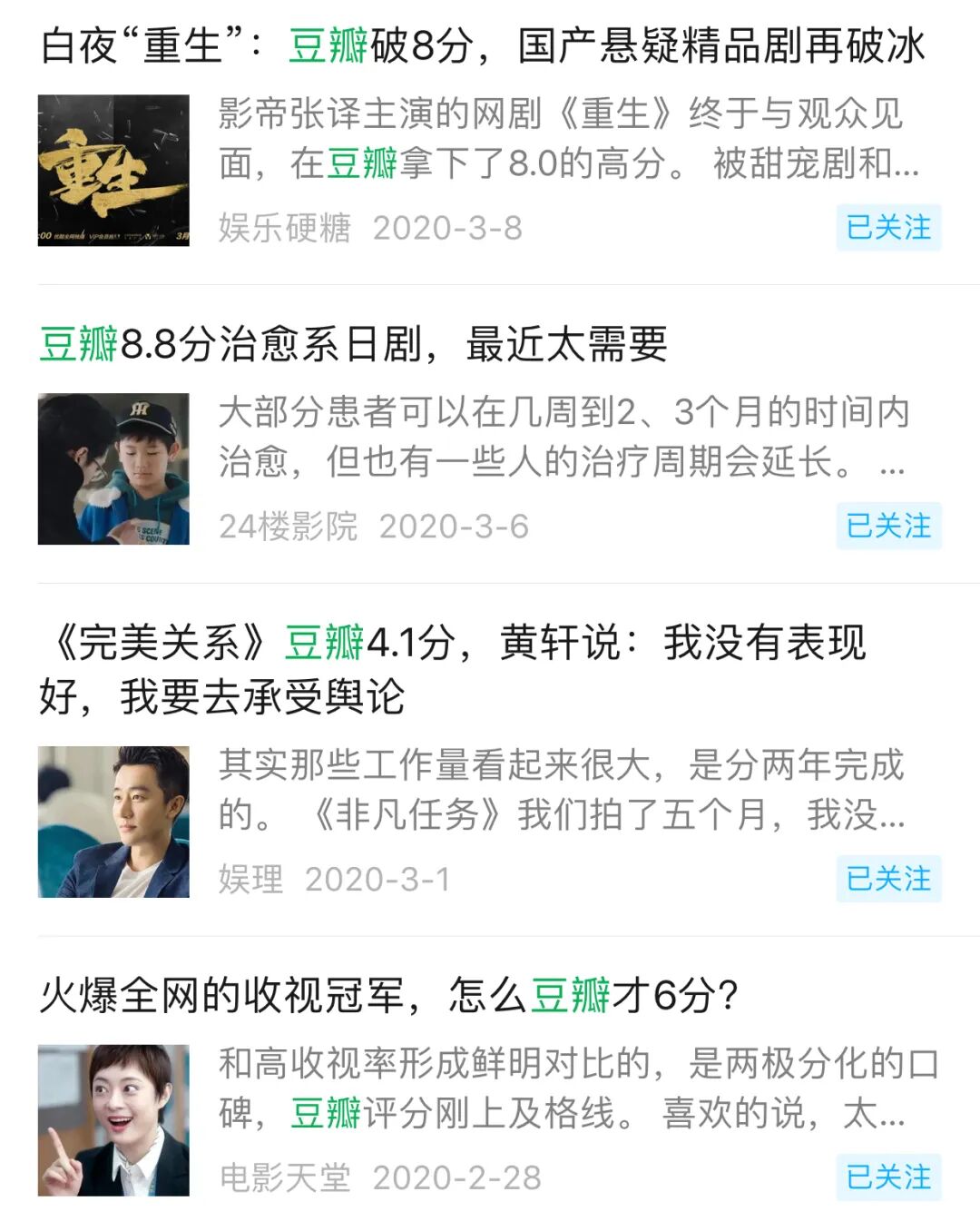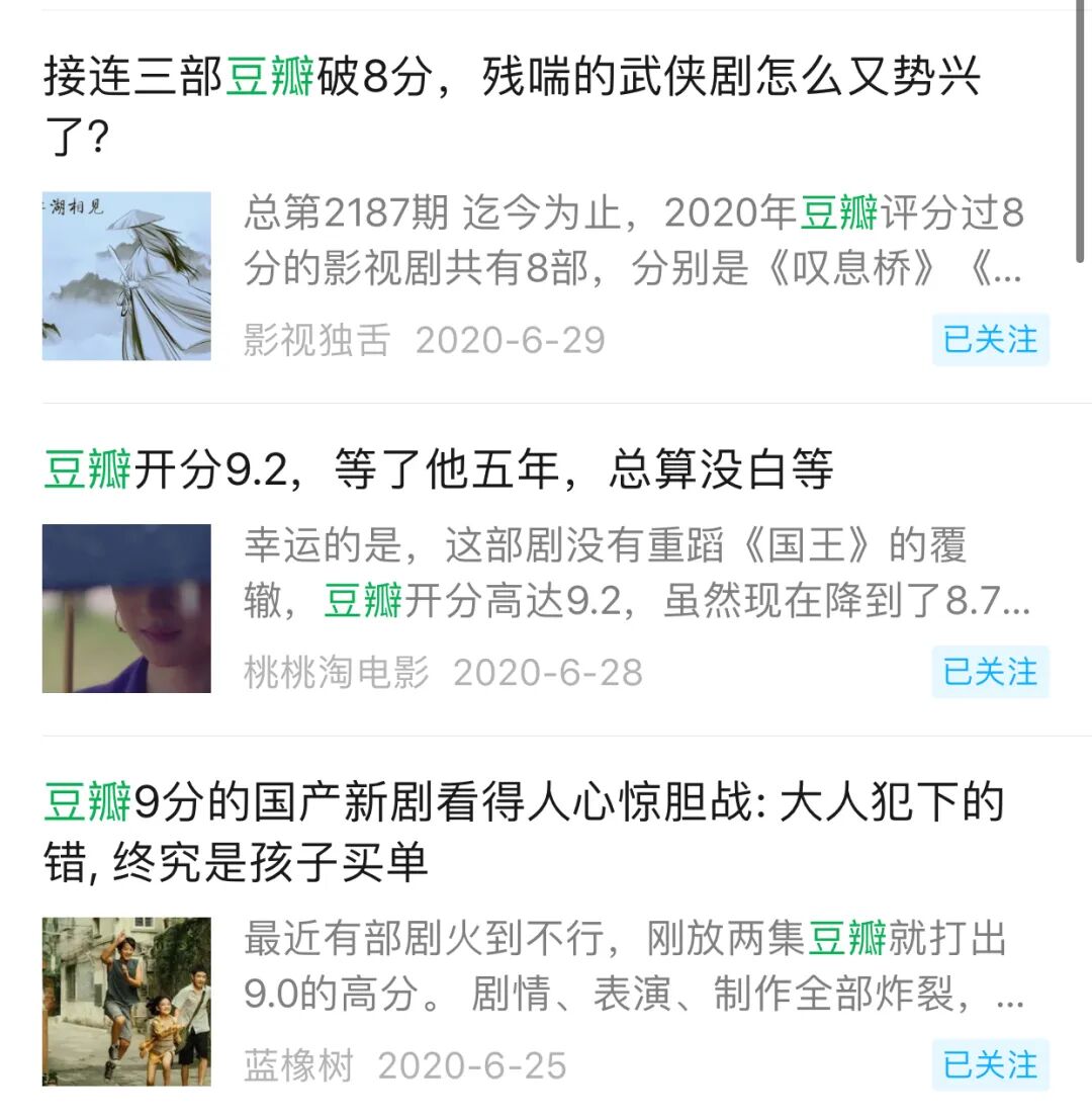 另一可供佐证的,是上星剧比纯网播剧更难被控分,说到底还是受众广泛,路人评分基数大。三是这几年大家言必称豆瓣分,让豆瓣影视评分几乎已成为圈内唯一可参考的标尺。以豆瓣评分的系统机制,两三年前影视公司和粉丝想要刷分,恐怕要付出高昂的成本去搞定权重高的活跃号。但经过两三年的大批量养号,无论是粉丝还是专业团队,手里恐怕都已养出大量可供打分的活跃账号了。我在微博diss近期豆瓣国产剧分数发大水时,有人在底下回复:这就过于武断了。最简单的逻辑,如果国产剧的豆瓣分真的没用,粉丝和利益相关方又何必耗费时间和金钱,去求一个不错的分数呢?