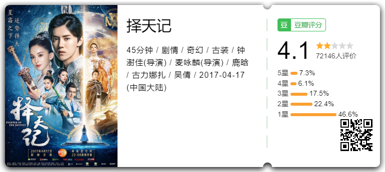 而现在,仅仅一年半时间,回看这句话的我,觉得脸生疼。粉丝+水军的双重努力下,某些国产剧的豆瓣评分,已经完全丧失了参考价值,成为了剧方和粉圈狂欢的资本。按“7分以上就值得试一试”的往日经验,近期简直是遍地佳剧啊,无论现言古言、探险奇幻、都市女性,各个题材作品都在水准之上,妥妥国产剧大年的节奏,简直国产剧观众之福呢!