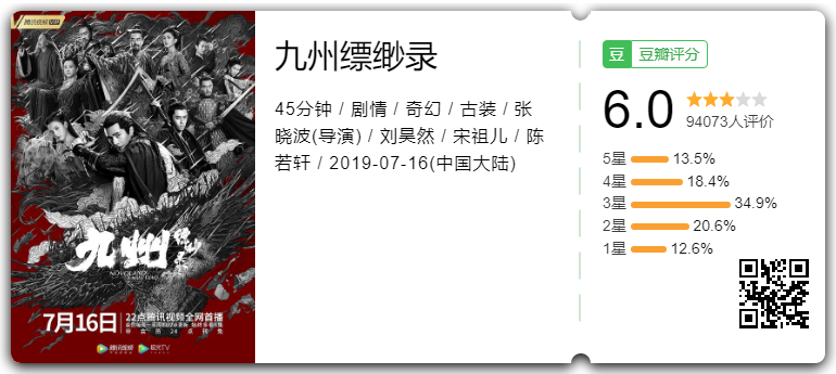后半段垮掉被拉到6分线的《九州缥缈录》也委屈巴巴。
