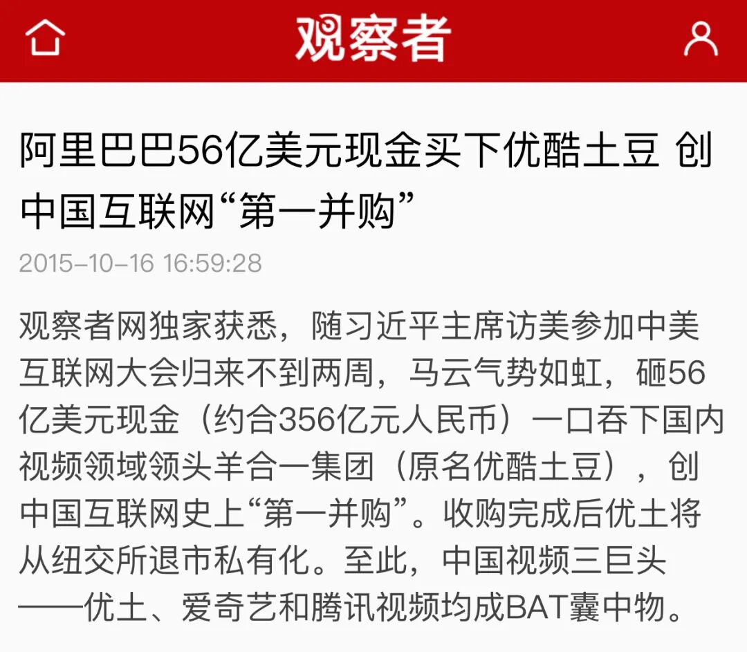 还是这一年,阿里启动了对优酷土豆的收购,半年后收购完成,以互联网资本支撑的优爱腾竞争正式打响。
