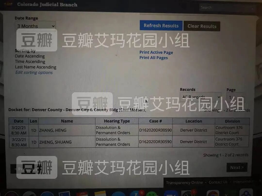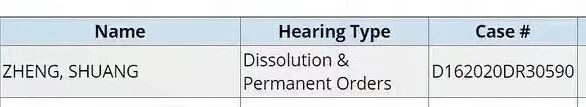 先是有人在美国公开网站上付费查询到了这样一条在诉官司:显示姓名为“SHUANG ZHENG”和“HENG ZHANG”的离婚案。