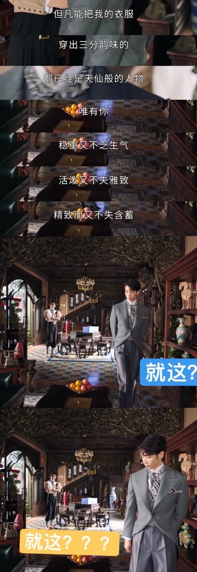 但对着这两个人嗑cp感我也是无能为力,型款不match,剧情没帮助,表演跟不上,全靠镜头剪辑疯狂强调,摁头嗑。![]()