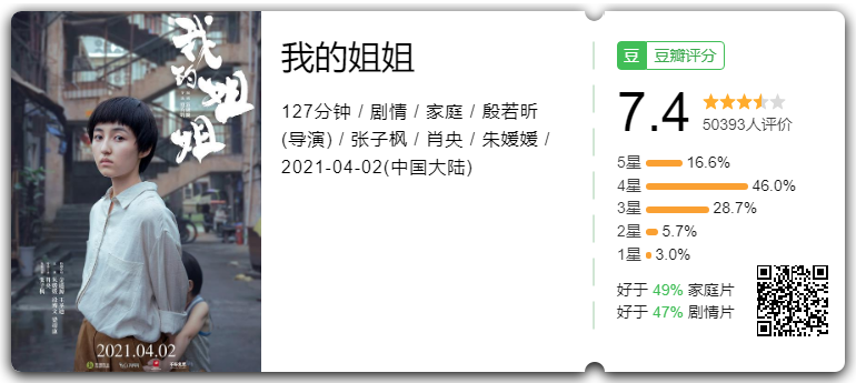 从电影的角度,这部片子文本大于影像,镜头语言相对平凡,节奏和情节上也有不少不足,比如弟弟喊姐姐“妈妈”的情节,不现实也毫无必要。但会引发很大争议的主要是结局,我深深感受到了主创表达的艰难。也有业内人士证实了这个结局是被干涉的结果。![]()