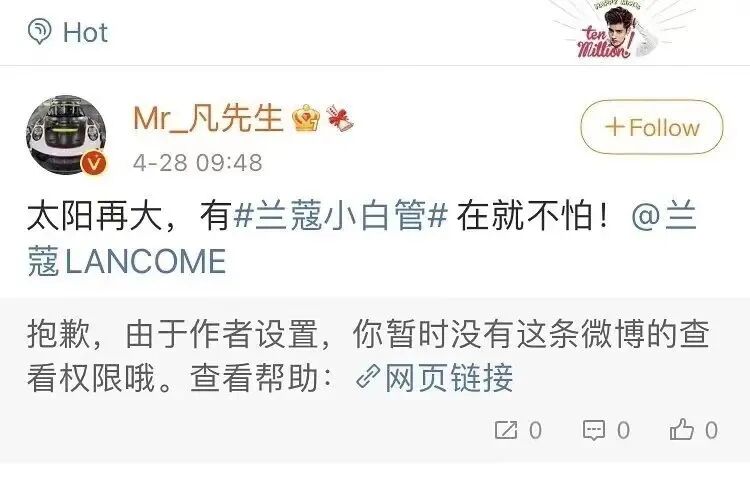 以目前的状况,磋商中的新代言新商务肯定是要停下来观望的,而这些已代言品牌的处理态度,其实某种程度上就反映了市场对此事的风险评估与反馈。截至目前,良品铺子、兰蔻等品牌对涉及吴亦凡的微博均做了权限限制。![]()