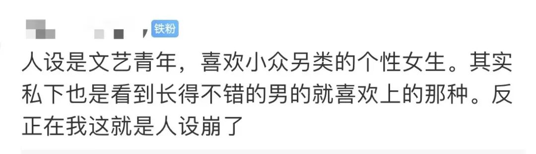 所以,在00花的序列里,张子枫除了时尚表现忽上忽下外,几乎没有太大的短板,要作品有作品,要人设有人设,要cp有cp,要国民度有国民度,前途一片大好。而这一次绯闻的重点,也并不是“国民妹妹谈恋爱”的幻灭。对于一个文艺少女来说,谈恋爱不要紧,找谁谈恋爱才是关键。之所以造成全民哀嚎,完全是选择一个专业普普且有大量负面恋爱传闻的爱豆谈恋爱这件事,它崩人设了。![]()