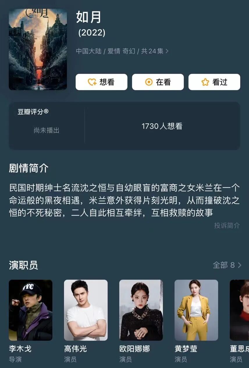 而她库存的影视作品,是2021年10月开机的《如月》,李木戈导演,搭配高伟光。