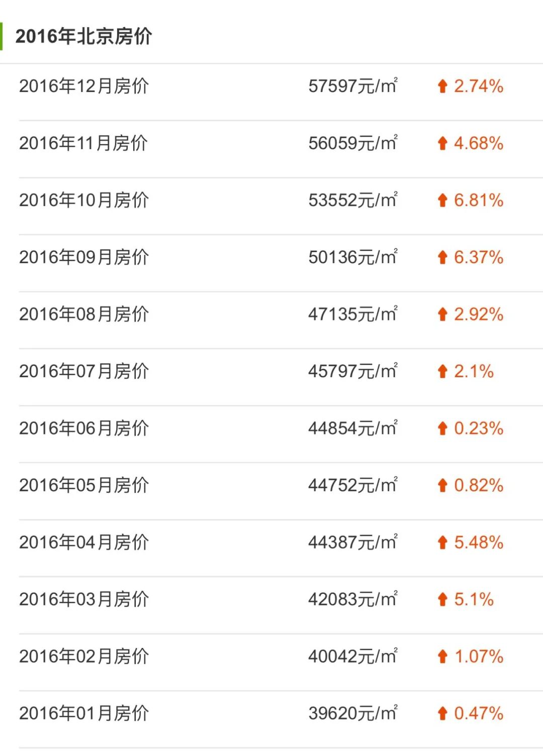 2010年北京商品房均价在2万元/平米,2016年北京商品房价格全年猛涨,但均价也不会超过5万。![]()