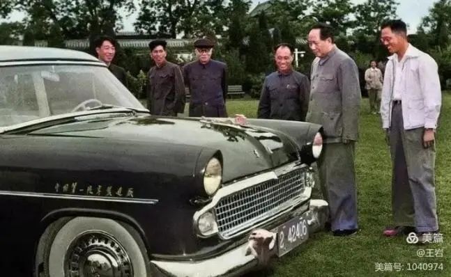 毛主席后来来到了长春,同中央领导和汽车工程师们仔细观摩着小汽车,这就是我国自主研发设计的第一辆CA71东风牌小轿车。