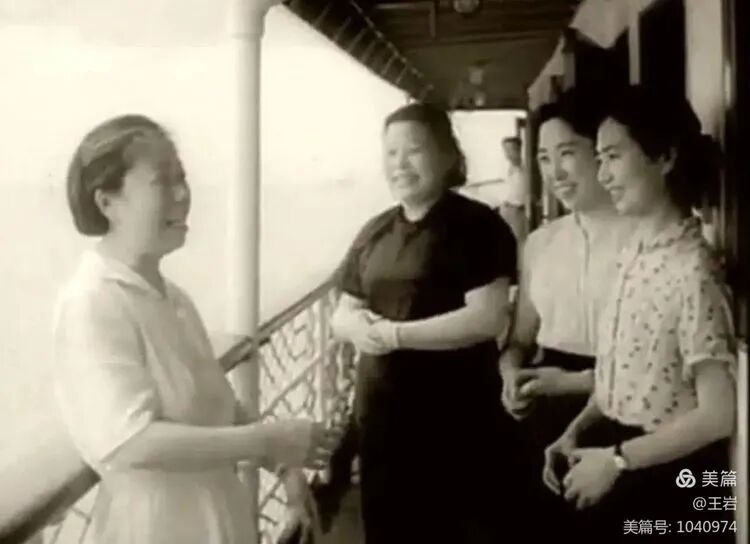 1959年6月底,周恩来夫人邓颖超、朱德夫人康克清、刘少奇夫人王光美、陈毅夫人张茜等在去庐山的船上轻松交谈。