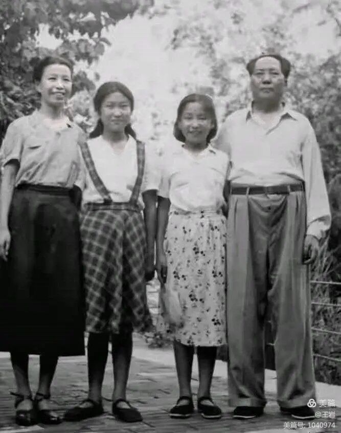 1954年,毛泽东、江青、李讷、毛远新: