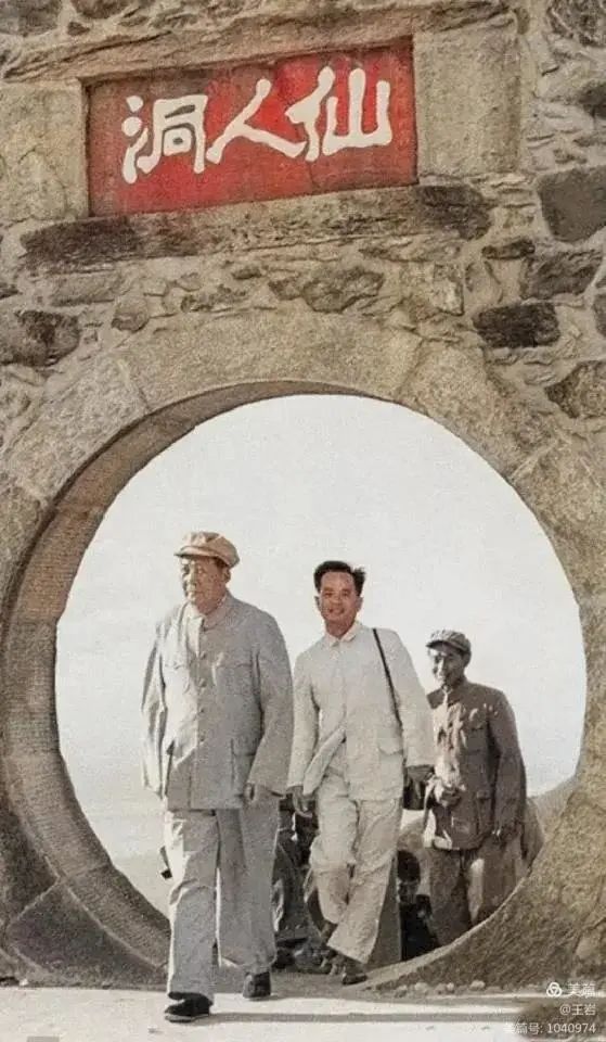 1954年5月17日,毛主席在吃完早餐后,坐在中南海菊香书屋内看完了一篇关于明朝的历史书后,忽然间兴致大发想要去北京故宫的城墙上去看一看,在故宫保卫科长的陪伴下,毛主席等人来到了北京紫禁城的城墙上,从照片看毛主席非常的高兴。