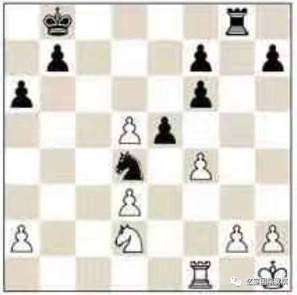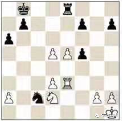 黑方不必马上去交换后。22. ... Qxa2 23 Rd2 Rxc2 以后,毕竟白方必须交换后。可能有 24.Rxc2 Qxc2 25.Qxc2 Nxc2 26.Nxf6,现在是26。...e4!27 .Nxg8 e3 28.Kg1 e2是最简单的平局方式,因为马残局没有给白方带来任何希望。