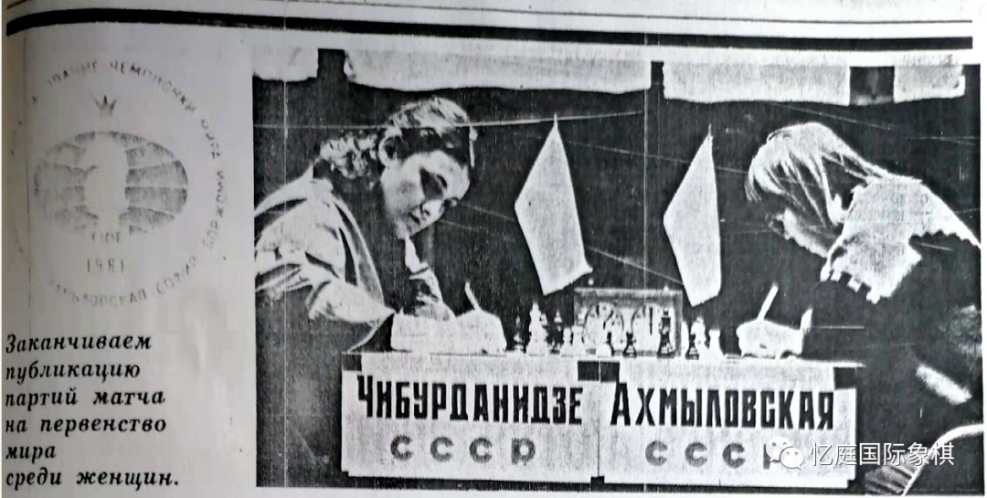 编者收藏的当年登在苏联64格杂志上的阿赫梅洛夫斯卡娅(右)与奇布尔达尼泽争夺女子世界冠军相片