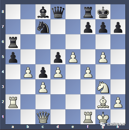 黑方并不急于走...Nxc1,因为用马换一个从未移动过的棋子,要付出时间代价的。卡尔森决定让威胁悬在阿南德的头上,继续他的破坏策略,这最终导致了中断...b5-b4。