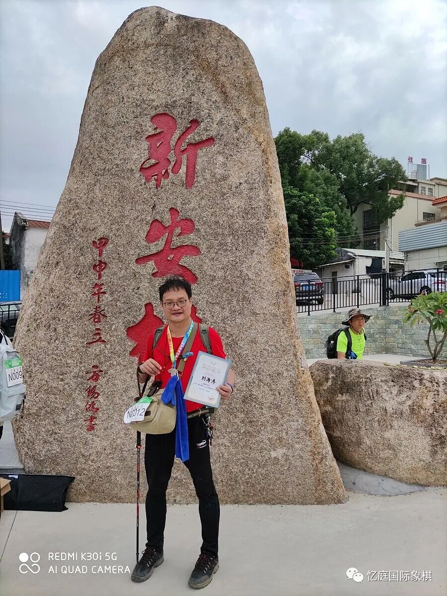 这是广东佛山50公里徒步活动的黄色布景板,有三十四万人参加,只有几万人完成,刘海涛参加了活动,九小时完成,最后五公里两只脚都起了水泡,每一步都像被针刺,还是坚持到终点。