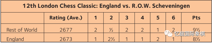 第12届伦敦国际象棋经典赛英国 vs 世界其他国家 舍维宁根赛制