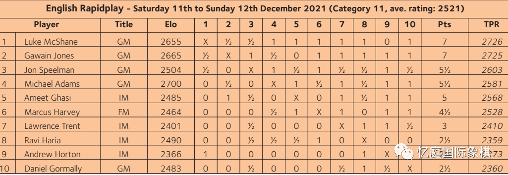英国快棋比赛 - 2021年12月11日(星期六)至12日(星期日)(第11级,平均等级分分:2521)