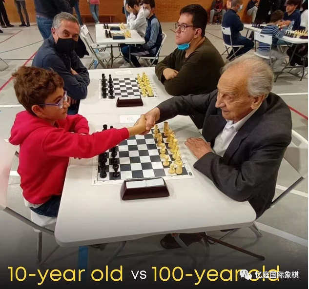 国际象棋没有极限!一张年龄相差90年的两名棋手对弈的照片。