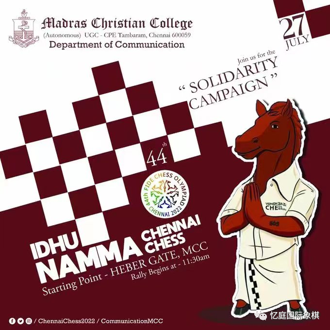 第44届国际象棋奥林匹克团体赛的开幕式将于明天后在印度钦奈举行,随着宣传的深入,YouTube上发布了一首欢迎来到钦奈的奥赛会歌。