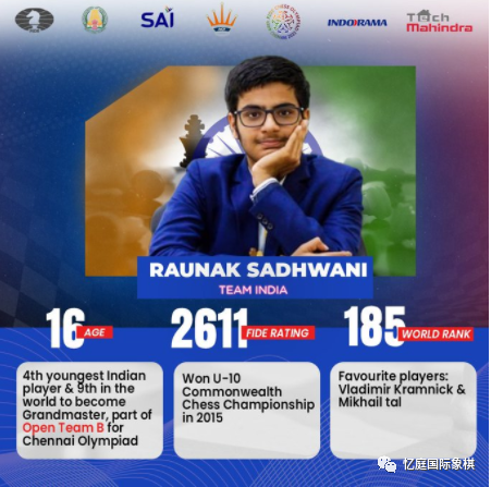 棋队中第二年轻的棋手劳纳克-萨德瓦尼在五台上比赛。这位年轻人来自印度中部的百万人口城市那格浦尔。劳纳克在新冠大流行病之后宣布,他想集中精力参加棋盘上的比赛。