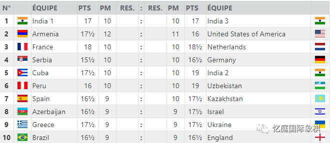 同样拥有 3 支棋队的印度队以第一名的成绩领先,这在一定程度上要归功于其第四局的 塔尼娅·萨赫德夫(2399),他两次带来了胜利;对阵匈牙利和法国。因此,印度将对阵阿塞拜疆,这是一支强大的棋队,在第 5 轮中与 穆兹丘克姐妹的乌克兰战平,在第 6 轮中击败 詹萨亚·阿布杜马利克 的哈萨克斯坦(2495)。