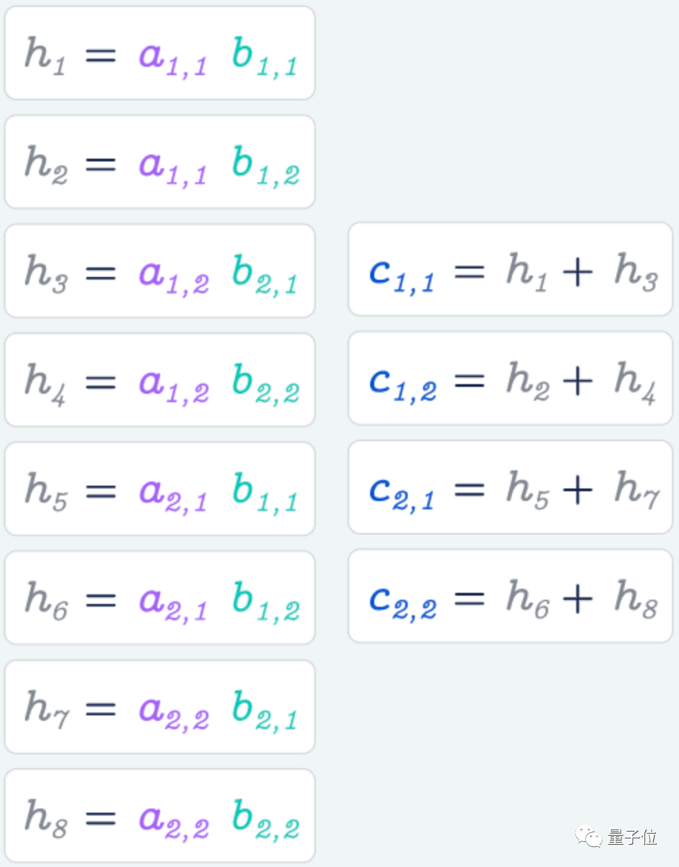他巧妙的通过构造7个中间变量,用增加14次加法为代价省去了一次乘法,这种方法被称为“施特拉森算法”(Strassen算法)。