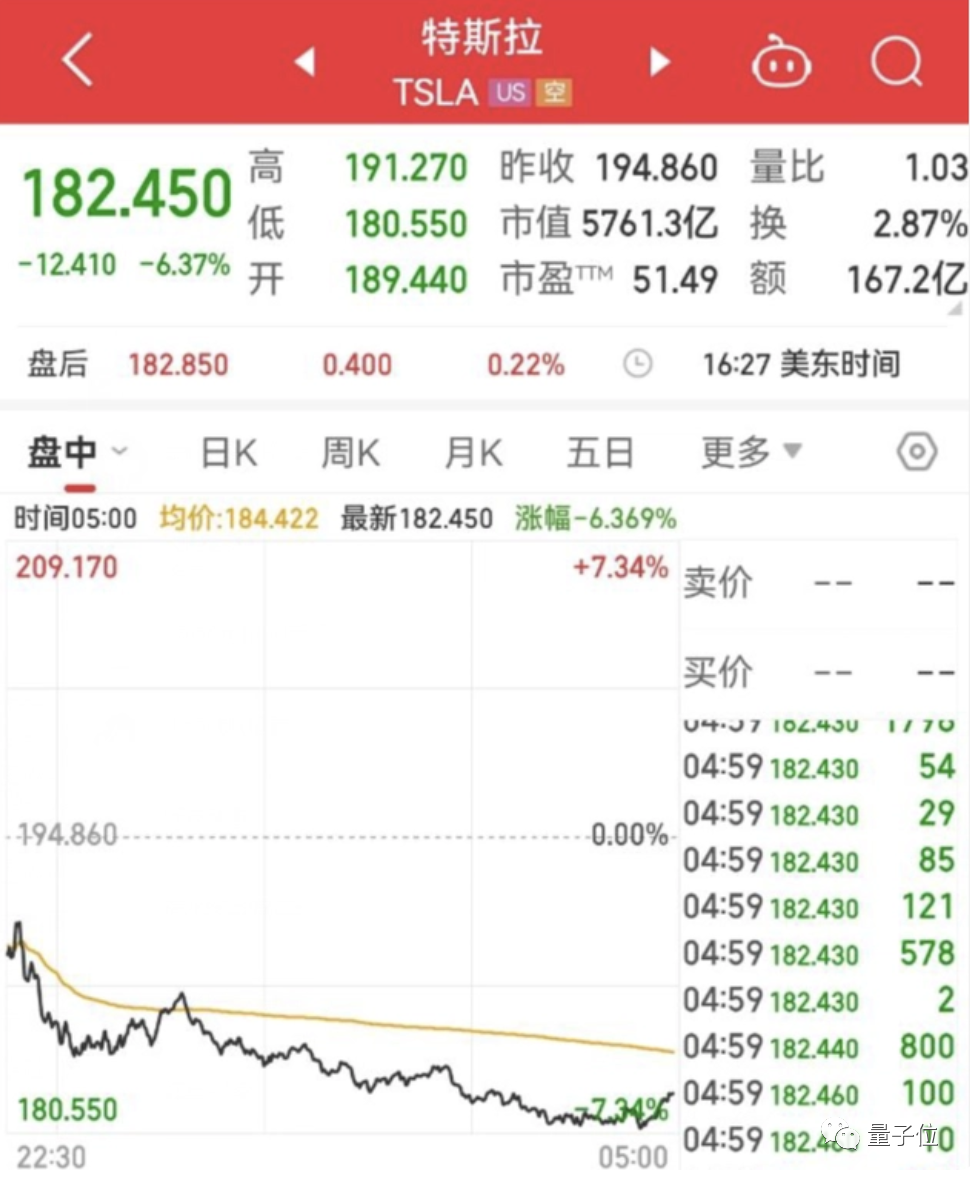 在这波下跌潮中,特斯拉跌超6%,市值一夜蒸发了392亿美元(约合人民币2729亿元)。