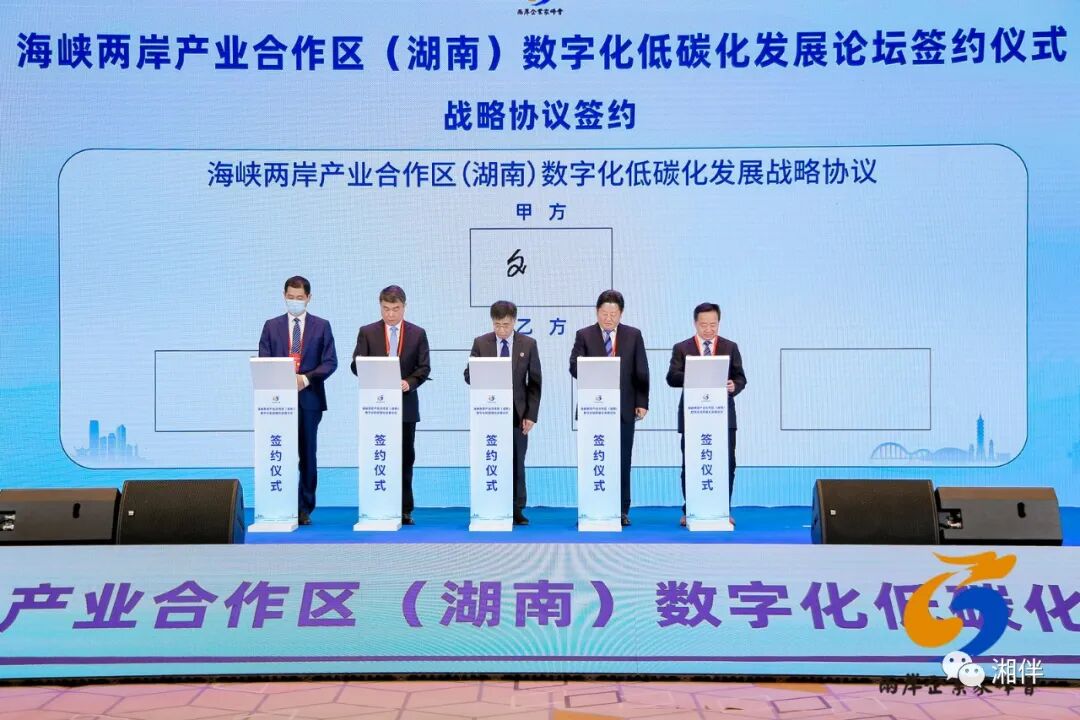 11月3日,海峡两岸产业合作区(湖南)数字化低碳化发展战略协议签署现场。图源:论坛主办方