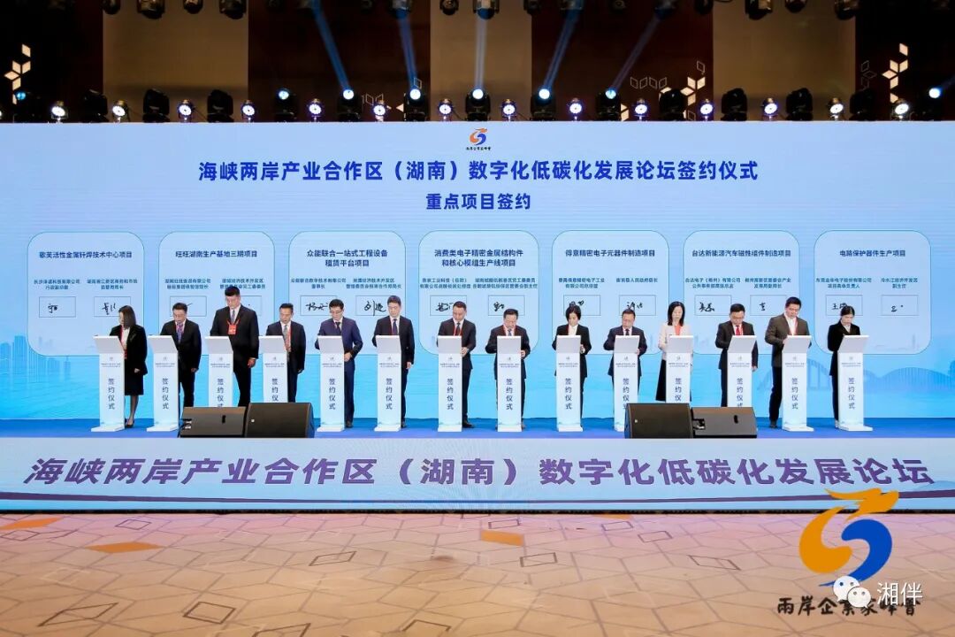 数字化、低碳化发展是大势所趋,也是实现高质量发展的必由之路。近年来,湖南完整准确全面贯彻新发展理念,积极稳妥实施碳达峰碳中和行动,大力发展“大智移云”等战略性新兴产业,去年全省数字经济总量超过1.3万亿元,绿色发展指数进入全国前10,数字化低碳化协同发展迈出新步伐。这次论坛以数字化、低碳化为主题,开展主旨研讨,举行项目签约,必将为湘台合作打开新空间,为数字化、低碳化发展注入新动能。湘伴君注意到,在今天论坛的项目签约环节,国家发展改革委国际合作中心、海峡两岸产业合作区(湖南)、湖南湘江新区共同签署了战略合作协议,多个项目举行现场签约。论坛签约成果共40个项目,投资总额238亿元,其中台资项目24个,总投资87.45亿元。