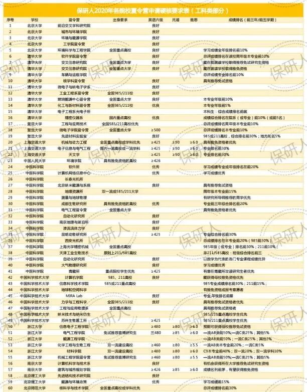 PS:此表为综合往年招生通知申请条件汇总,仅供参考,如今年有变化,以院校官方通知为准。