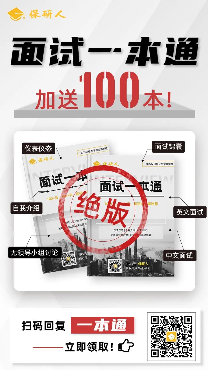 对自己提交的简历要100%熟悉!一路经验证明老师的自主提问基本都是围绕你提交的各种材料,因此你要对自己的简历中的每个成绩、文章、奖项都清清楚楚,不能忽略每个细节,再小的细节都可能成为致命点。